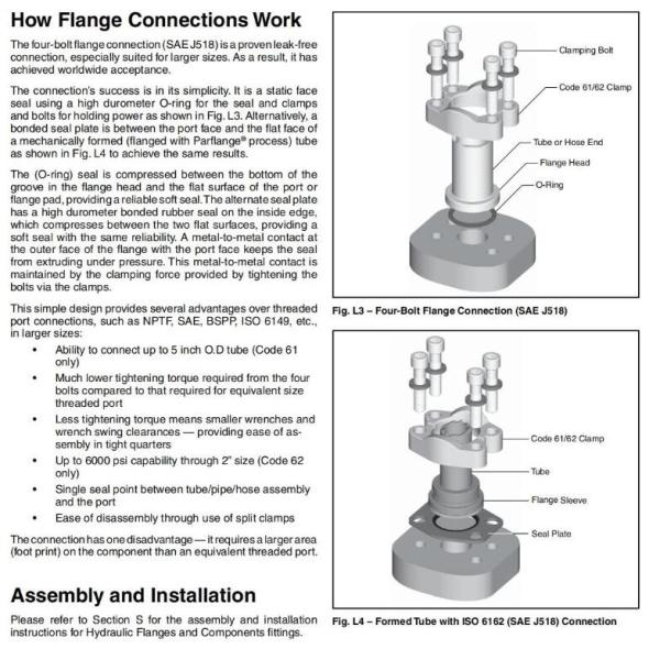 Introduction of hydraulic fluid power- flange connections with one-piece flange clamps and metric or inch screws: